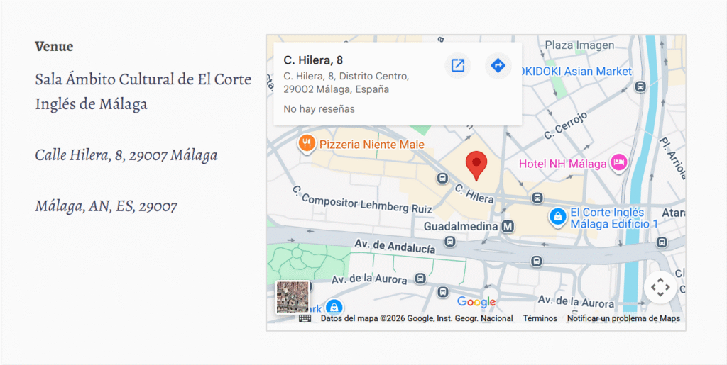 Lugar: Sala Ámbito Cultural de El Corte Inglés de Málaga.